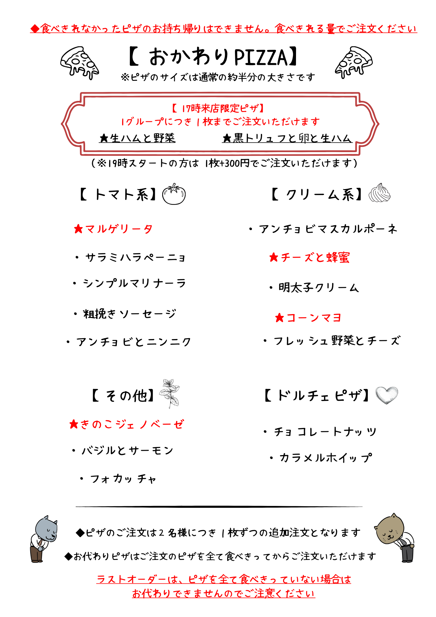 ※ピザの種類はおまかせとなります